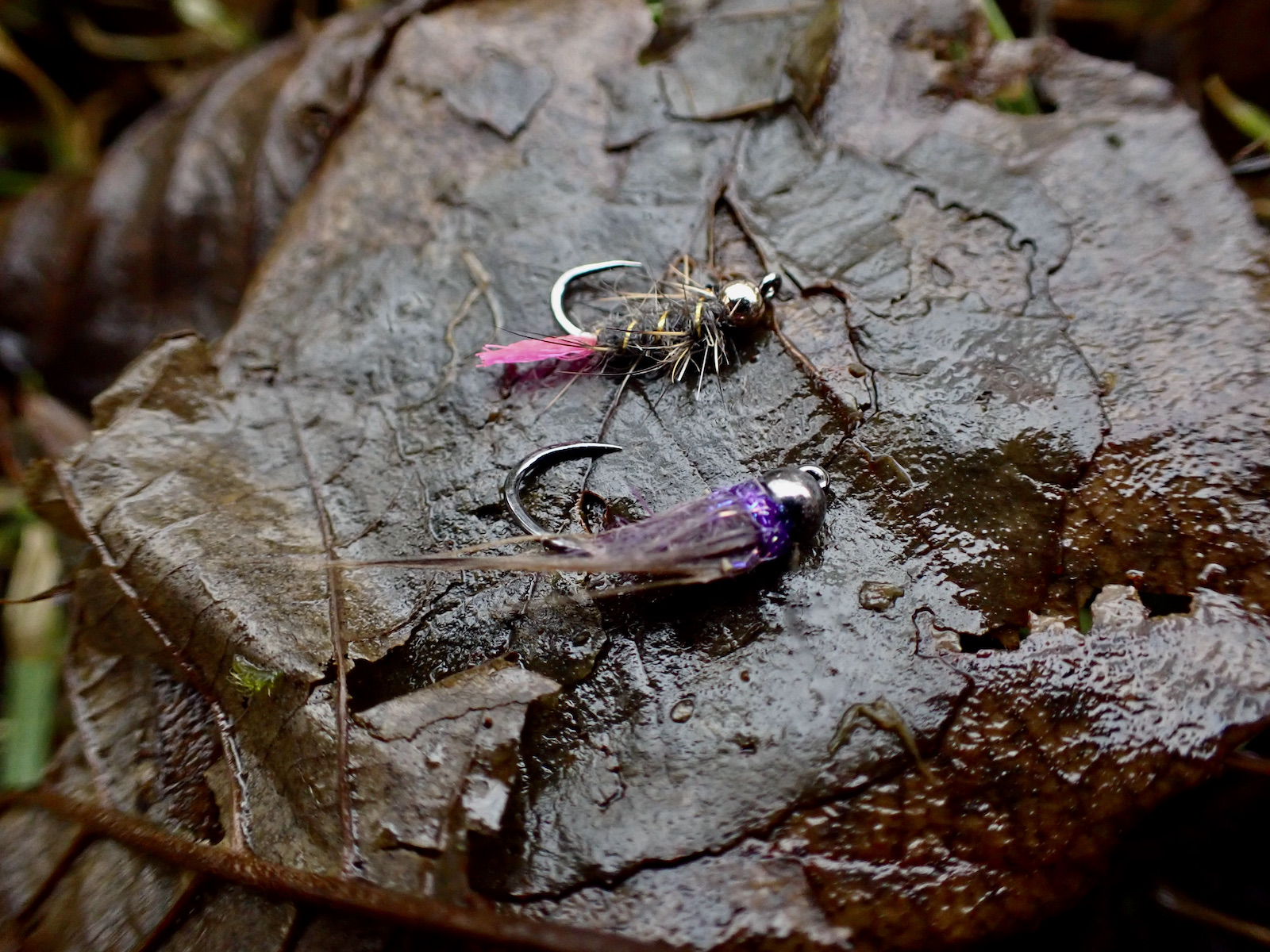 My initial probing of the water proves fruitless but as I work upstream my confidence increases and I settle into a rhythm of dibbling the nymphs to search the river. I have the heaviest nymph on a dropper with a light pattern with a flash of pink on the point. This ensures that both trip along close to the bottom where I anticipate the grayling will be lying.