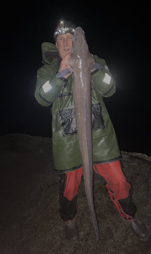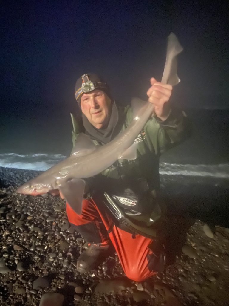 A night on the shoreline with Kevin who gets an early smoothound; there here all year round it seems!