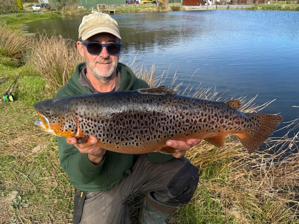 Bruce Elton enjoyed a day to remember at Bulldog Fishery banking this superb personal best brown trout scaling 11ln 10oz. The fish was tempted on a buzzer after missing the fish on a large black snake fly. Bruce also caught a 4lb 8oz brown trout and four rainbow trout of between 2lb and 3lb.