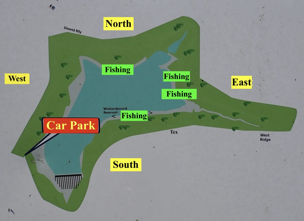 I walked along to the South bank where a good stretch of bank is fishable. I covered this stretch of water casting and stepping to cover as much water as possible. See Map below :-