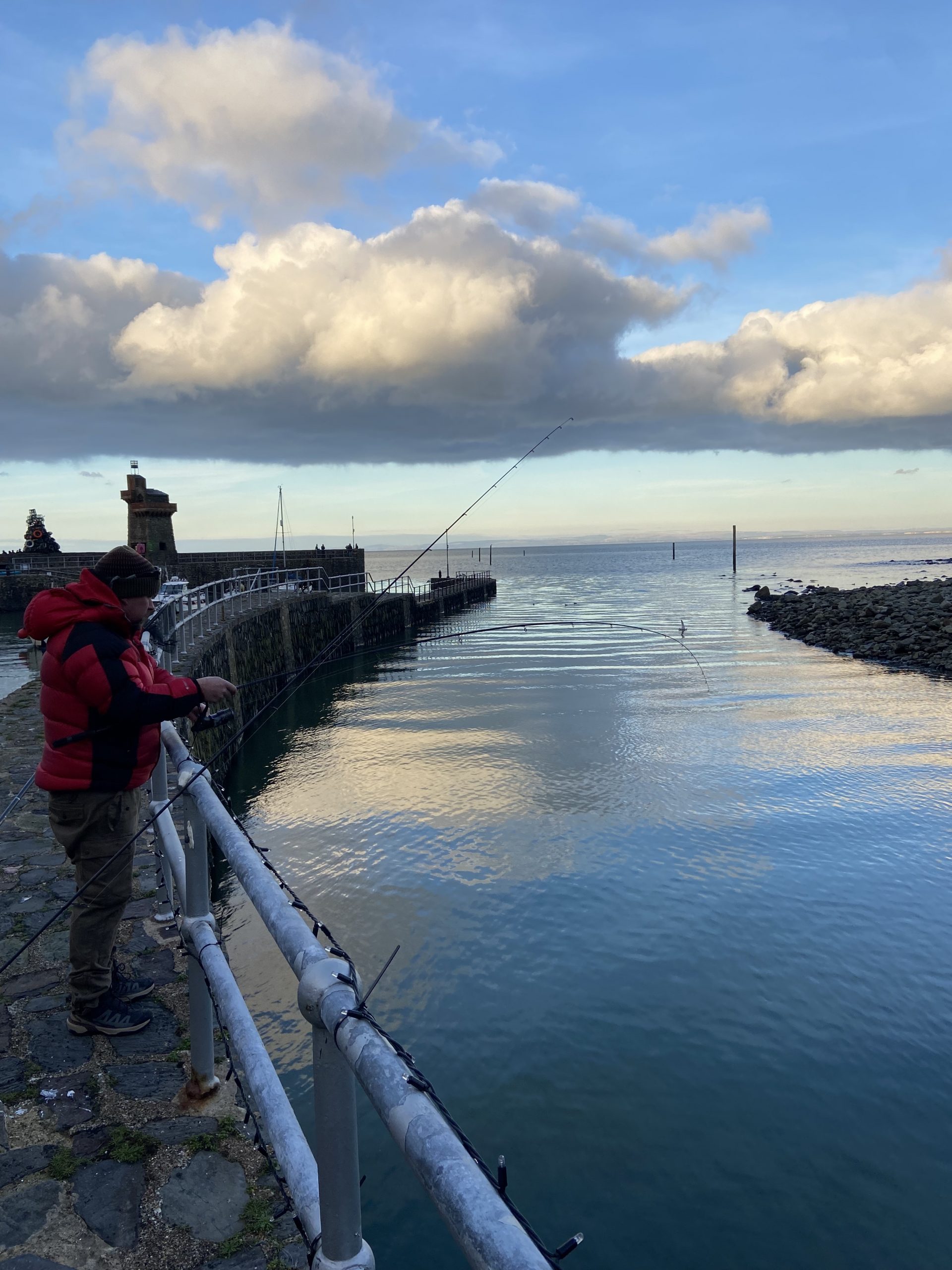 Its starting to look a lot like Christmas at the local harbour and after a succession of dogfish a moderate Bull huss takes the bait.